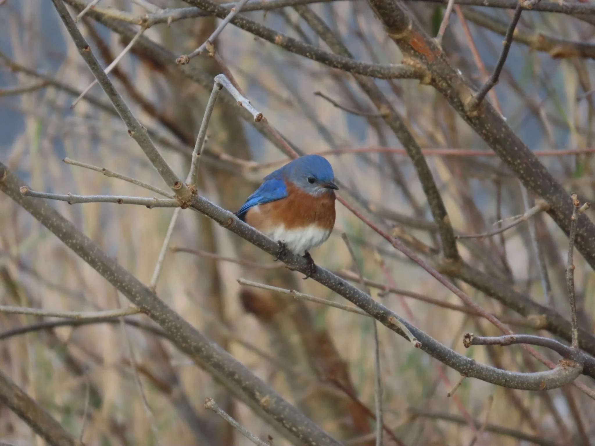 Until recently, Eastern Bluebirds were in decline. Primarily due to habitat loss and competition for nesting sites from invasive species such as House Sparrows and European Starlings, it was once uncommon to see them at all. In response, conservationists began installing bluebird boxes in an attempt to reverse this decline. These boxes mimic the natural tree cavities bluebirds use for nesting and are strategically placed in areas where they are most likely to use them.