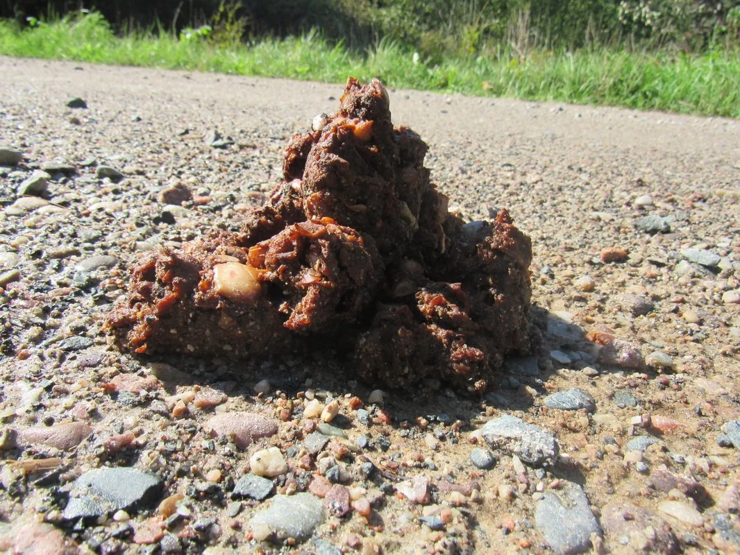 Yesterday afternoon, I took a walk from the office up to Boyer Drive to do a little field work. Half way up the hill, I found the first of many bear scat piles along the road. The scat was big, red and full of apples, which made sense because there are a lot of apple trees up that way.