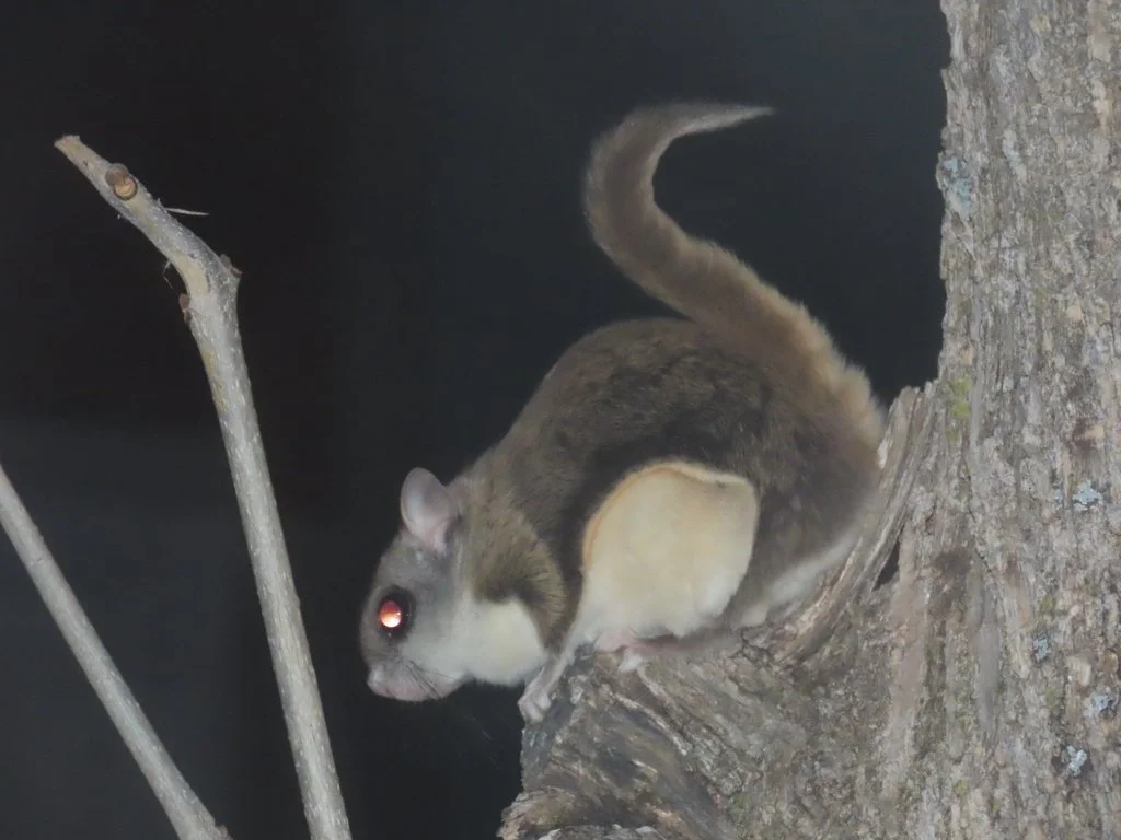 Have you ever seen a flying squirrel? These critters are relatively common around here, but they are seldom seen because of their nocturnal nature. If you’re lucky, right at dusk you can see them “fly” from one tree to another. I find them absolutely fascinating to watch.